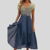 Denne kjolen har moderne linjer og en solid blanding av trykk, laget for å skille seg ut uten å være overveldende. Passformen og stilen gjør den egnet for bryllup, fester, middager – eller ethvert arrangement der du ønsker å føle deg tydelig antrukket.