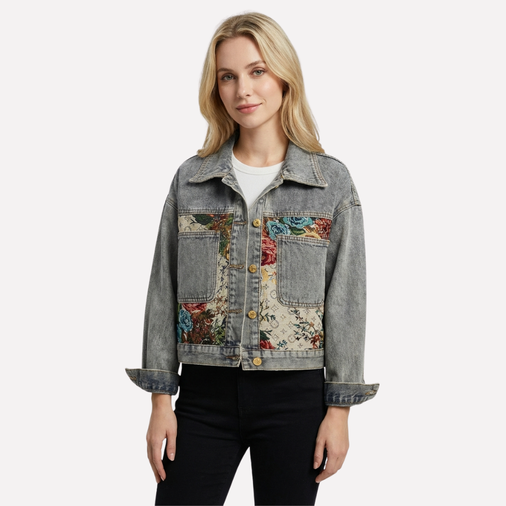 Oppgrader garderoben din med denne blomstrete jeansjakken – en blanding av klassisk denim og bohemsk eleganse. Med håndmalte blomster-motiver blir hver jakke unik, noe som lar deg uttrykke personligheten din med stil. Perfekt både til bytur og festival, gir denne jakken et fargerikt og kreativt preg til antrekket ditt.