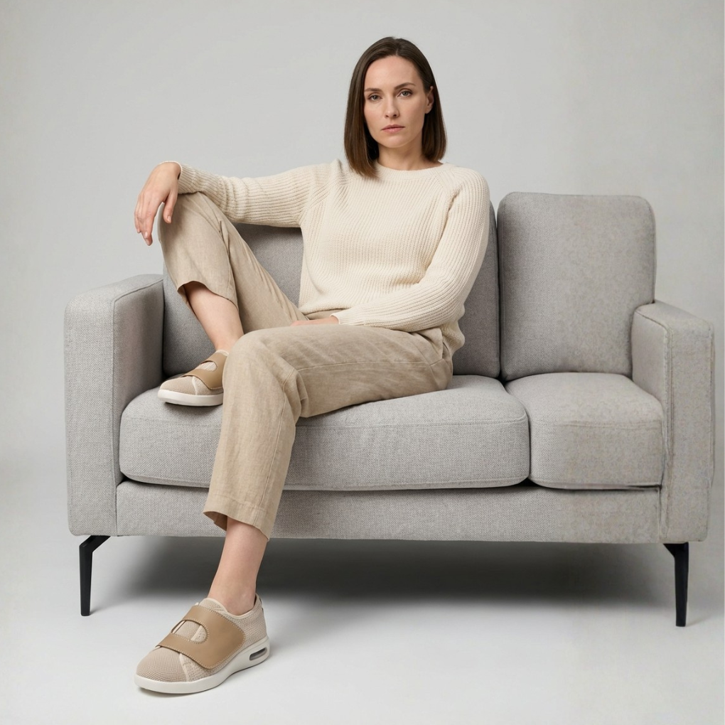 Elastiske overdeler tilgjengelig i bredder 2E–10E – imøtekommer mild til ekstrem hevelse i føttene, og imøtekommer daglige endringer komfortabelt