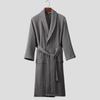 Denne badekåpen i bomull gir et raffinert preg for hviletiden uten å føles klumpete eller overdrevet. Den myke veven faller fint, og omslagsdesignet sikrer en koselig følelse for rutiner etter dusjen eller avslappede morgener. Den er skreddersydd for både menn og kvinner med en moderne form som komplementerer mange visuelle elementer.