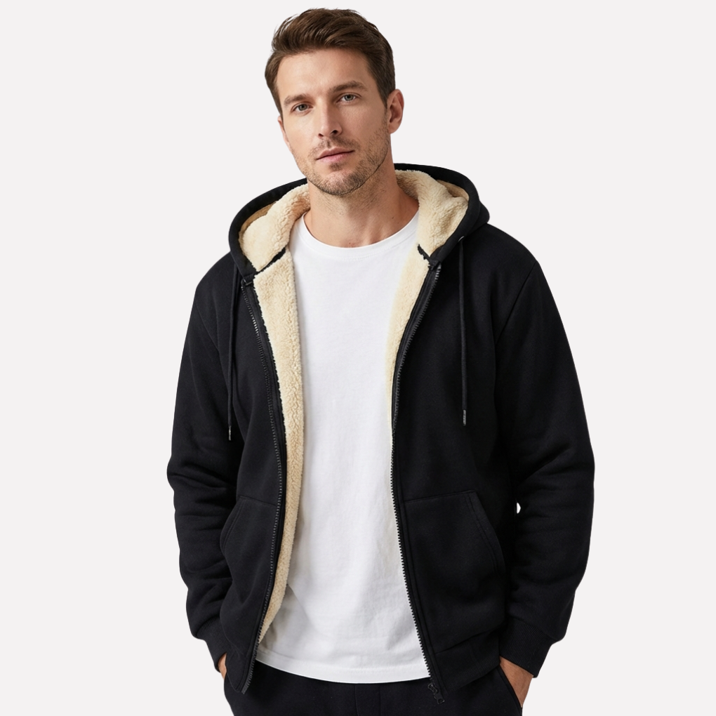 Hold deg varm og komfortabel hele sesongen med denne fleecefôrede vinterjakken med hettegenser for menn. Denne koselige hettejakken er designet med tykt sherpafôr og en avslappet passform, og er perfekt for uformelle utflukter, hverdagsbruk eller avslapning i kaldt vær. Det slitesterke polyesterskallet og det myke interiøret gir isolasjon uten å ofre mobilitet.